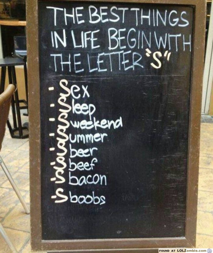 Did you realize that the best things in live start with the letter S? Or something like that. I have no idea what’s going on here, or why Scoffee or Schocolate are not on the list.