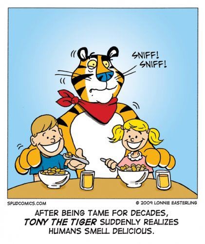 Tony the Tiger thinks humans smell delicious.